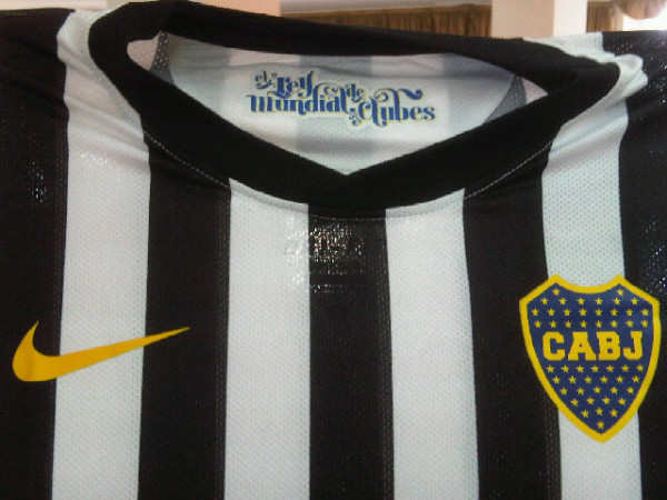 La camiseta aurinegra se basa en los comienzos del club , conmemorando sus inicios en 1905 , año en que se fundo la institución . Y es que la casaca blanca con bastones negros fue utilizada por Boca en los años de amateurismo en la temporada 1905-1906.